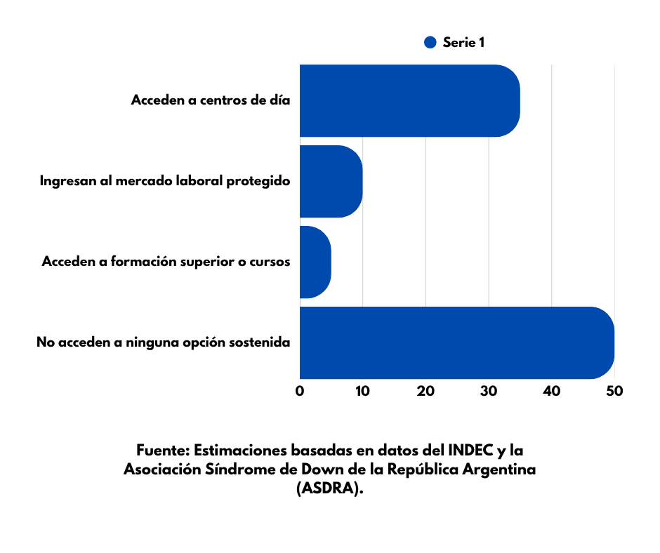 Este gráfico muestra la distribución porcentual de las opciones disponibles para los jóvenes con discapacidad una vez que superan la edad límite del sistema educativo especial.